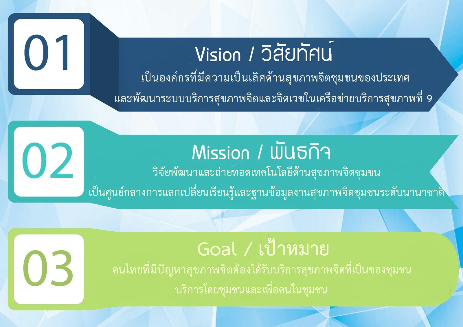 • วิจัยพัฒนาและถ่ายทอดเทคโนโลยีด้านสุขภาพจิตชุมชน
